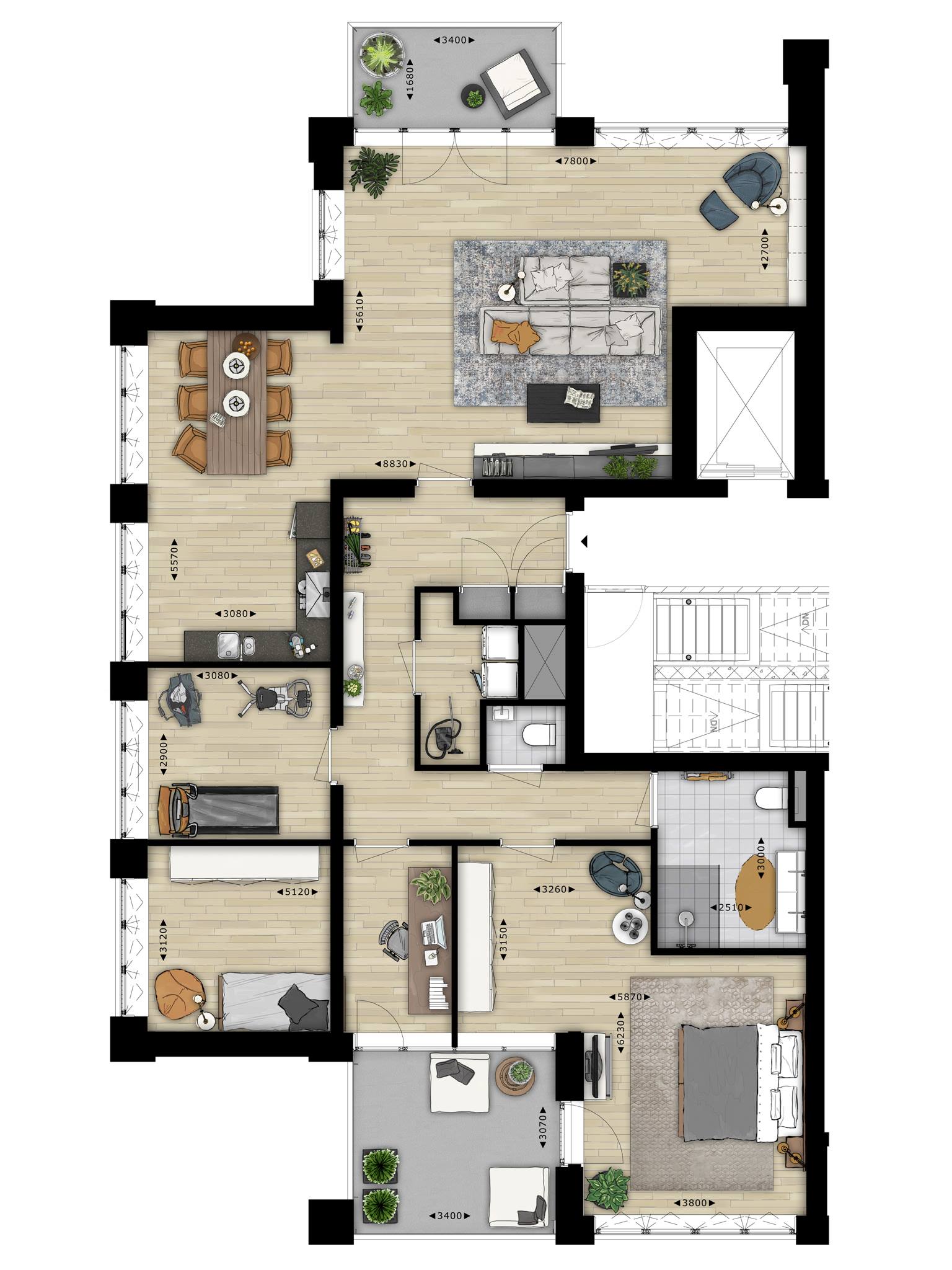 - 6 penthouses